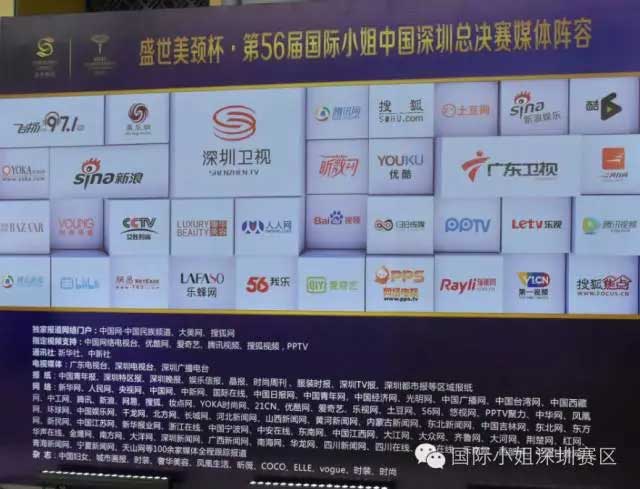 大賽的盛況同時(shí)也成為了各大媒體爭相關(guān)注報(bào)道的焦點(diǎn):深圳電視臺娛樂頻道、深圳電視臺財(cái)經(jīng)頻道、深圳電視臺都市頻道、深圳電視臺公共頻道、深圳電臺飛揚(yáng)971、廣東電視臺新聞?lì)l道、廣東電視臺綜藝頻道、深圳特區(qū)報(bào)、深圳都市報(bào)、晶報(bào)、深圳晚報(bào)、深圳商報(bào)、南方都市報(bào)、網(wǎng)易、新浪、搜狐、騰訊、雅虎、鳳凰網(wǎng)等大型門戶網(wǎng)站、《醫(yī)學(xué)美學(xué)美容》雜志、《鳳凰生活》雜志社、《奢華美容》、138傳媒等,可謂陣勢強(qiáng)大。