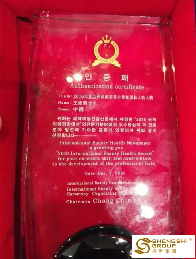 【2016年12月7日】盛世集團高管齊獲“國際美容健康杰出人物大獎”