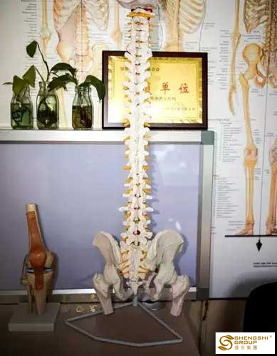 ▲ 在李橋教授的案頭,有一個1比1大小的脊椎骨模型,還擺著一本都被翻爛了的《脊椎徒手治療》。